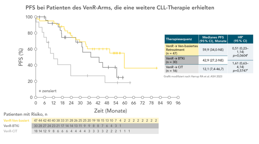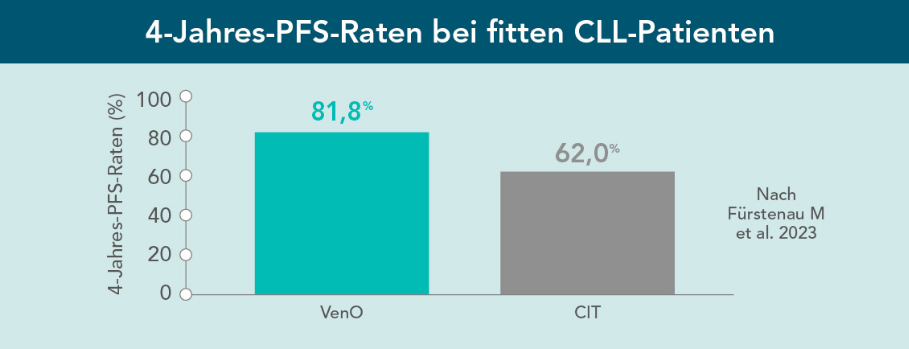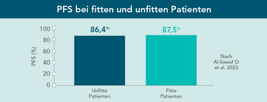| 1. Fischer K et al. New England Journal of Medicine. 2019; 380(23):2225-2236 2. Al-Sawaf O et al. Blood. 2024; [Epub ahead of print] DOI: 10.1182/blood.2024024631 3. Fürstenau M. et al. Oral Presentation [635]. ASH 2023, December 9-13, 2023 4. Al-Sawaf O. et al. Oral Presentation [S145]. EHA 2023, June 8-11, 2023 5. Al-Sawaf O. et al. Poster Presentation [4639]. ASH 2023, December 9-13, 2023 6. Harrup RA et al. Poster Presentation [1898]. ASH 2023, December 9-13, 2023 7. Seymour JF et al. New England Journal of Medicine. 2018; 378(12):1107-1120 |